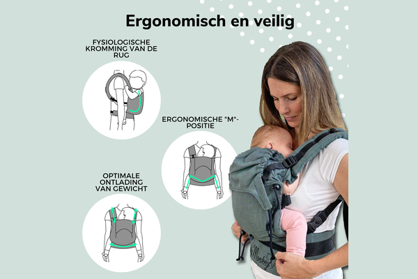 Let wel goed op of jouw draagzak overal genoeg steun geeft en voor een ergonomische houding voor zowel jou als je kind zorgt. Een breed zitvlak en ondersteuning tot aan de knieholten is hierbij voor je baby belangrijk. Voor jou is het belangrijk dat het gewicht goed wordt verdeeld. Ergonomische dragers verdelen het gewicht goed over je heupen en schouders.