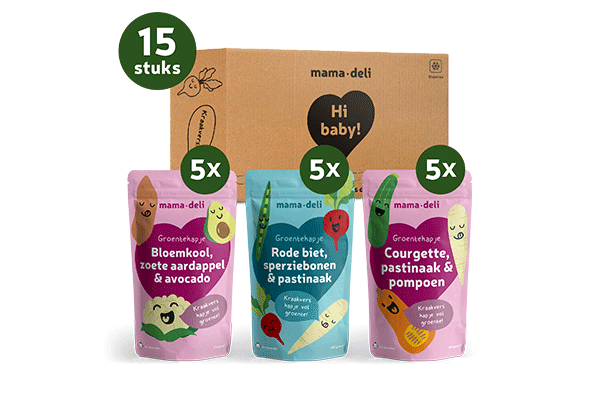 Is jouw kindje met 4 maanden gestart met de oefenhapjes en gaat het goed? Dan kan je de 2 proefmomenten blijven uitvoeren en eventueel overgaan van 2-ingrediënten hapjes naar 3-ingrediënten hapjes. Zoals in de Mama Deli Groentehapjes Box 6+ maanden.