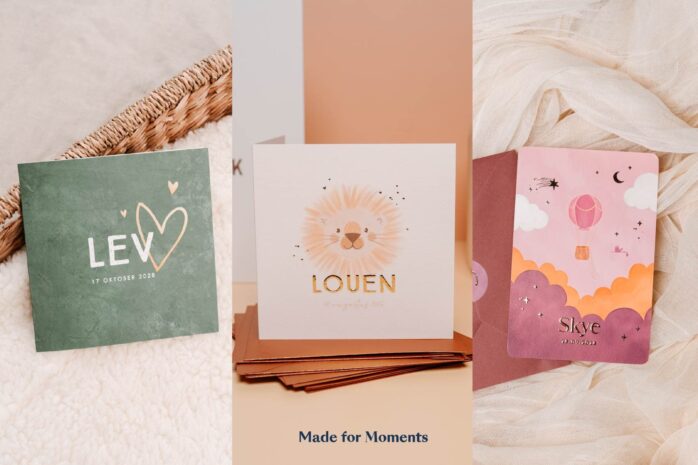Bij Made for Moments vind je geboortekaartjes die net zo uniek zijn als jullie kindje. Van strak en minimalistisch tot speels of luxe met foliedruk: elk ontwerp pas je makkelijk zelf aan. Bestel een proefdruk en ontdek hoe bijzonder jullie kaartje er in het echt uitziet.