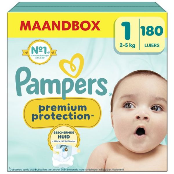 Pampers Premium Protection is extra zacht en geeft dubbele bescherming. De luier houdt je baby goed droog en voorkomt lekken dankzij de Stop & Protect pocket aan de achterkant. Bij de navel zit extra ruimte, zodat je kindje ook vlak na de geboorte een luier kan dragen zonder dat het knelt. De luier is daarnaast dermatologisch getest.