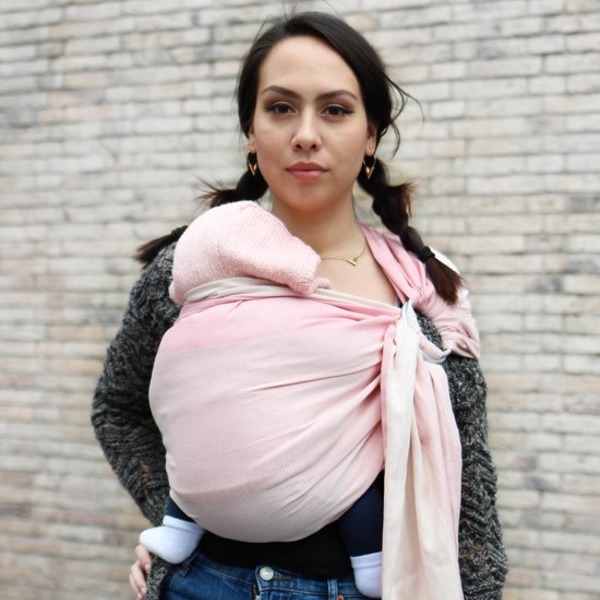 - Het beste van twee werelden. Je hebt de snelheid van een draagzak, maar de stof vormt zich naar je lichaam zoals een draagdoek.